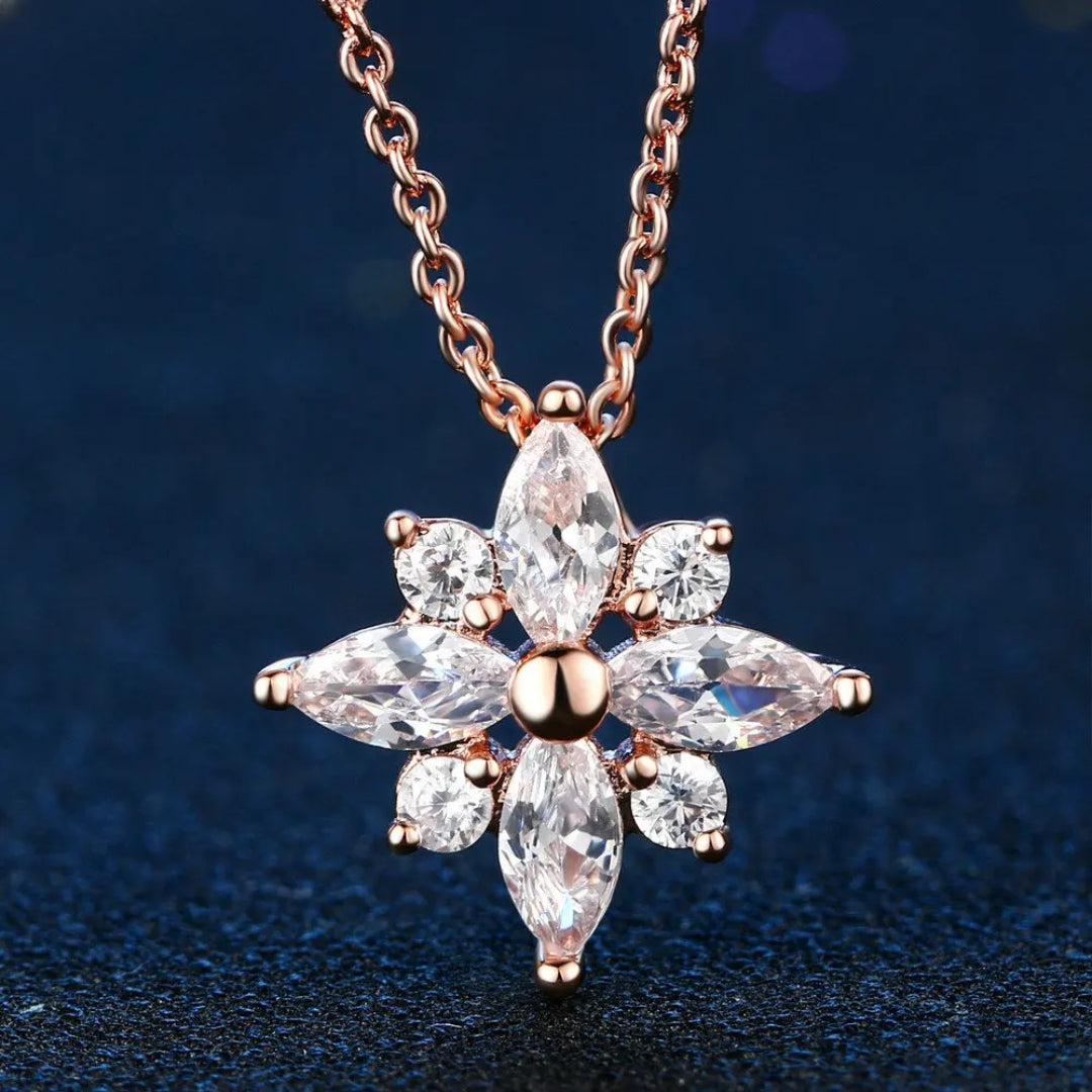 שרשרת פרח זירקון רוז־גולד היא תכשיט שמאיר את הצוואר ברכות יוקרתית.