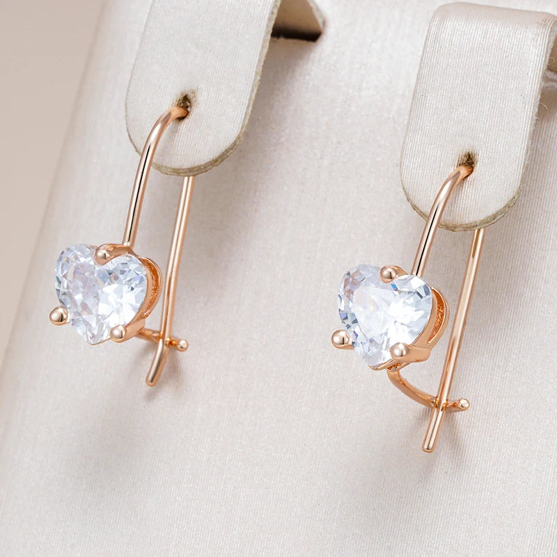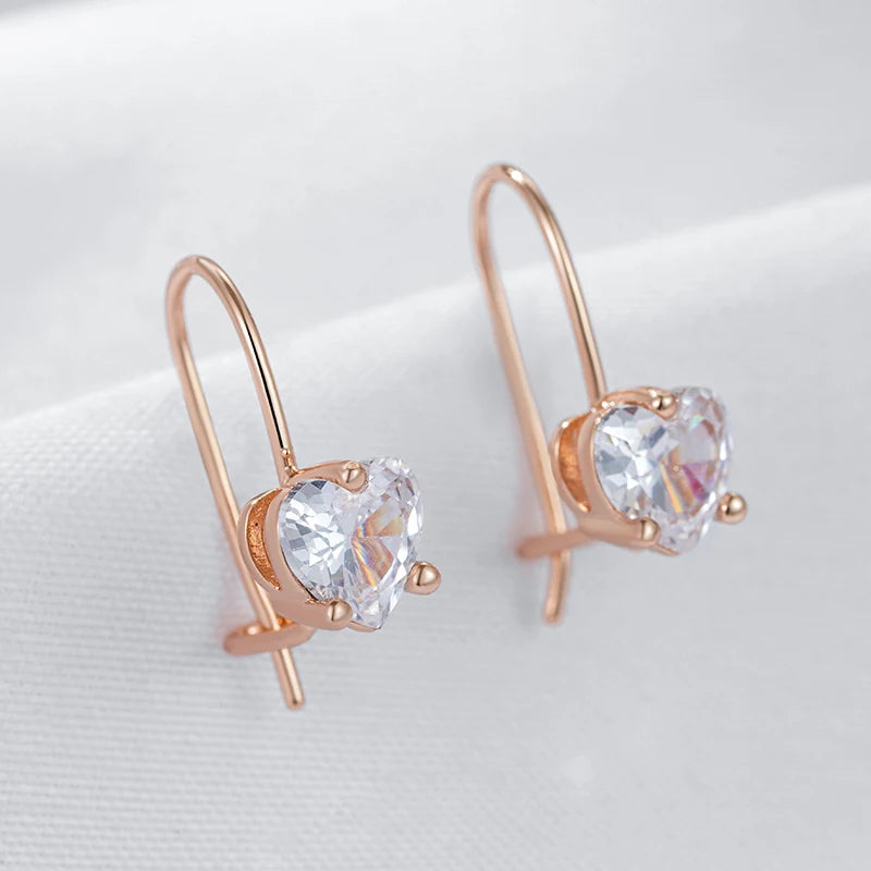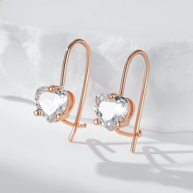 עגילי לב קריסטל רוז־גולד הם תכשיט עדין שמוסיף ברק רומנטי לכל לוק.