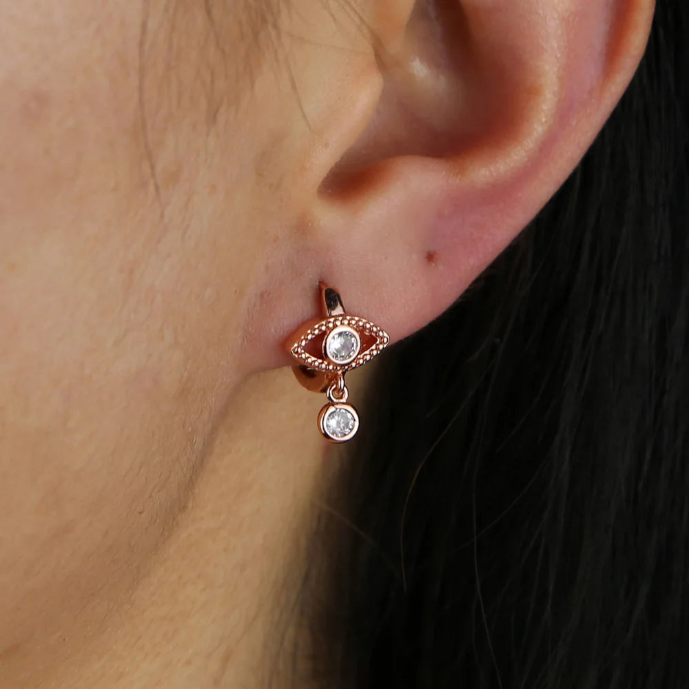 עגילי עין משובצים עם תליון משלבים יוקרה עדינה עם סטייל מלא משמעות.