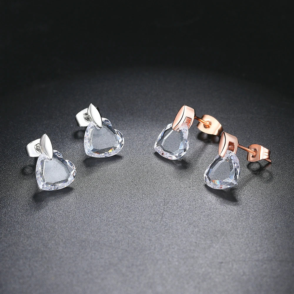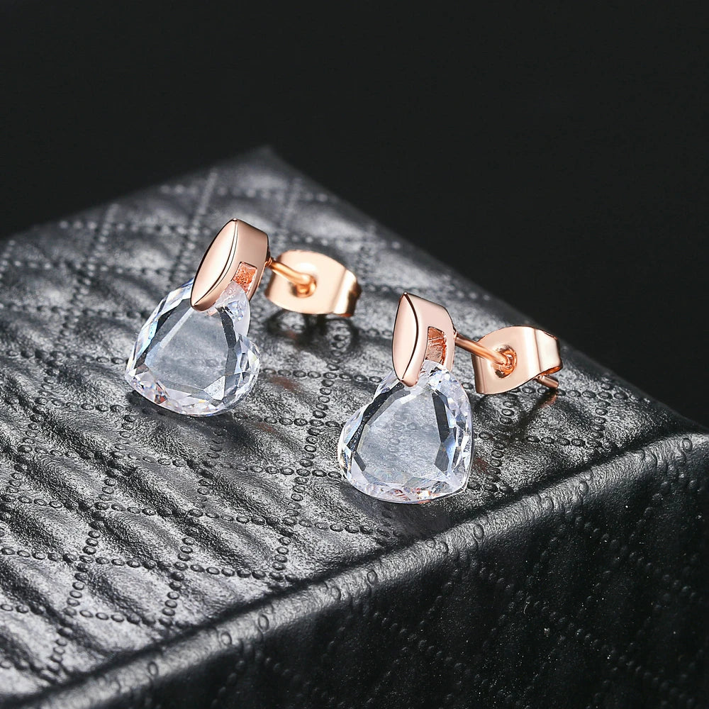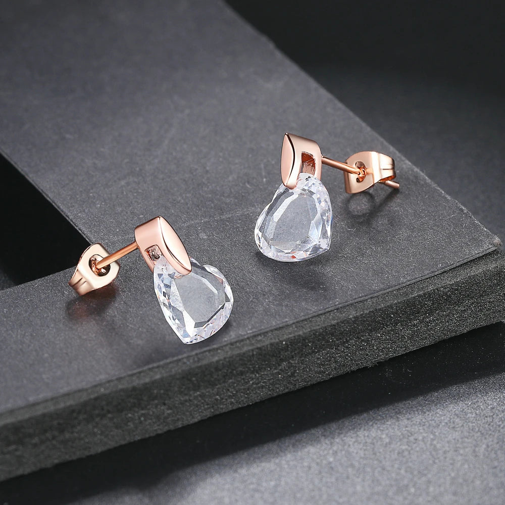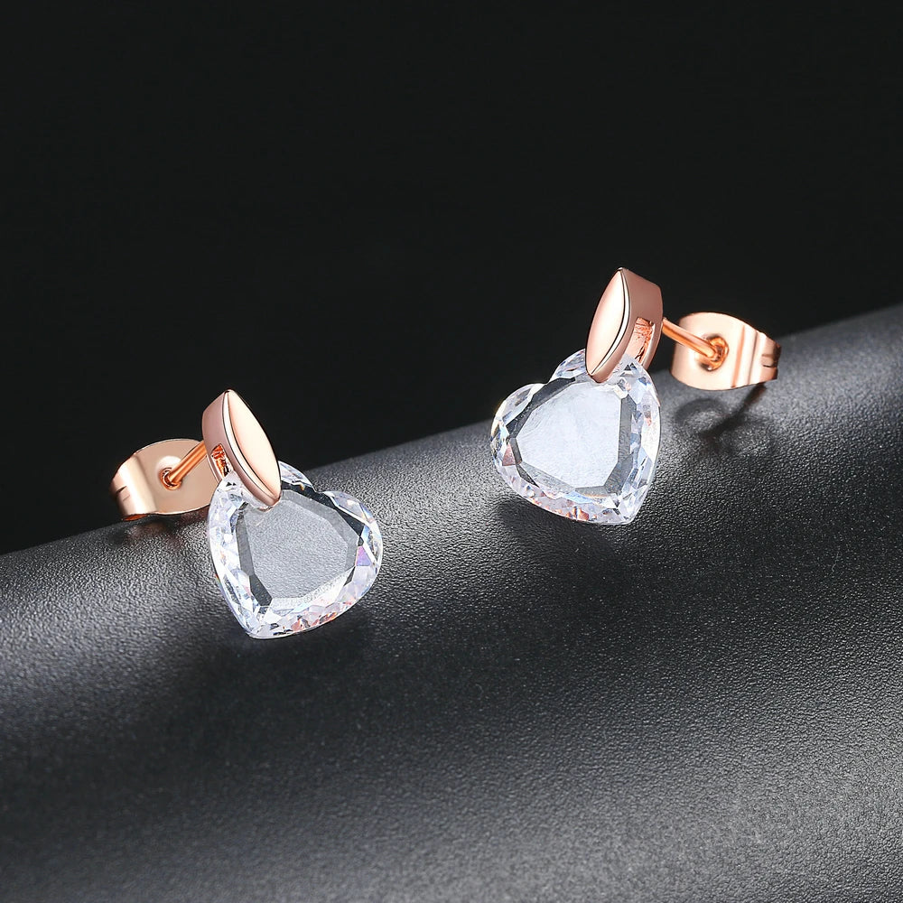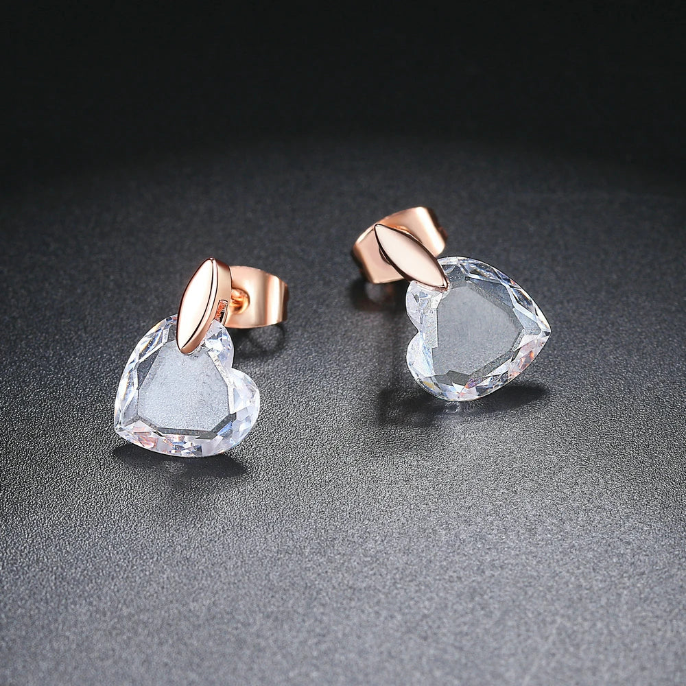 עגילי לב קריסטל רוז־גולד משלבים עדינות רומנטית עם ברק יוקרתי שמאיר את הפנים.